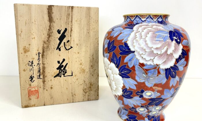 お客さまより、お電話にてお申し込みいただき、深川製磁 金彩牡丹外赤 8号 花生 ...