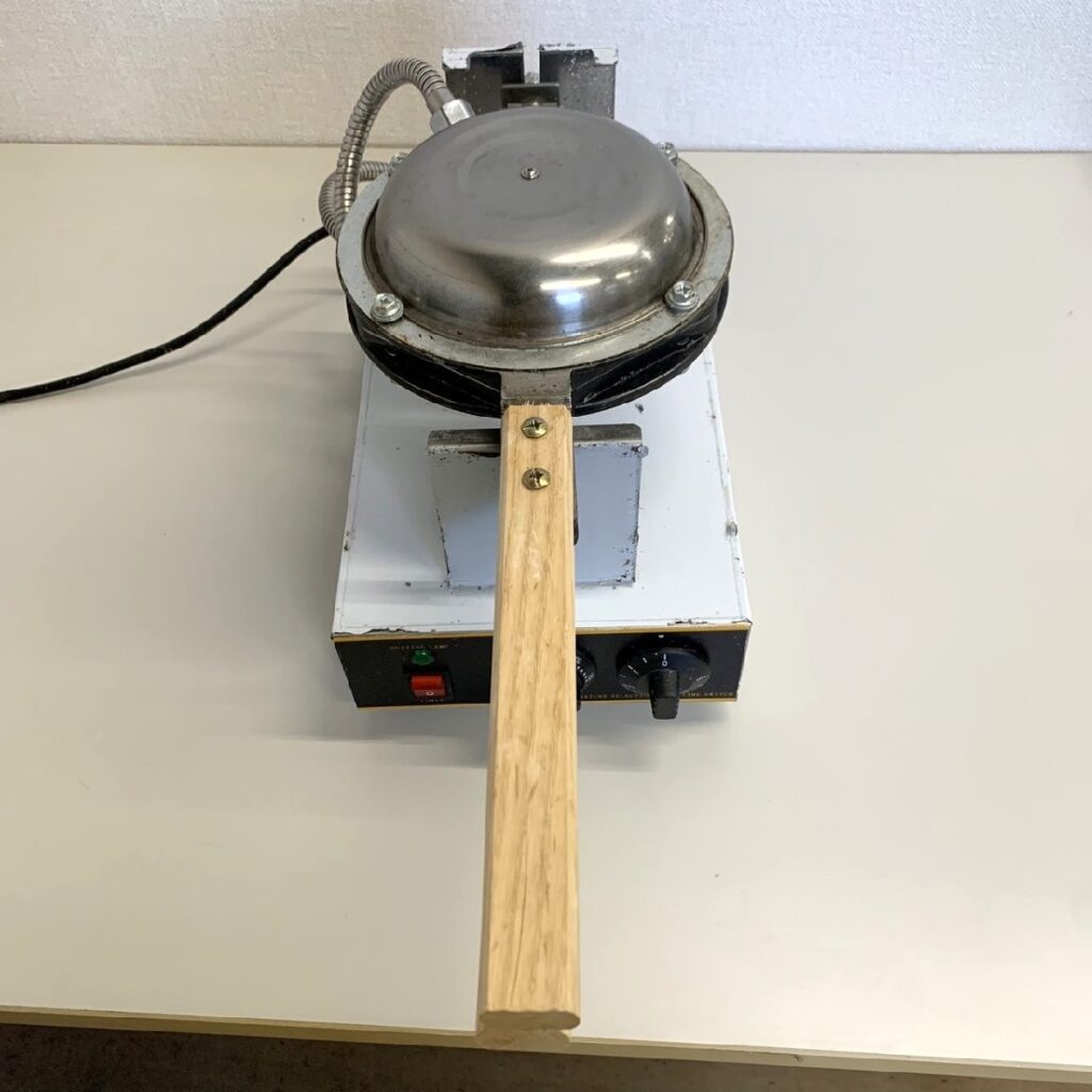 サイズ:高さ:約27cm 横(幅):約22cm 奥行:約58cm、出力:1,400Wのお品で、通電確認済みですがワッフル作成はしていませんので現状品としてお買取をさせていただきました。