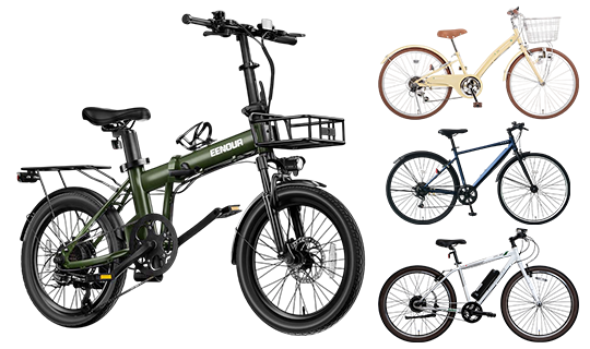 通学や買い物には荷物を沢山載せられるシティサイクルタイプ、街なかを走るなら小回りが効いて漕ぎ出しが軽いミニベロタイプなど、種類も豊富です。
