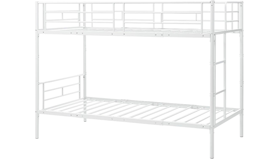 金属製のフレームを使用した二段ベッドで、耐久性やデザイン性に優れています。通気性が良く、モダンなインテリアにもマッチするのが特徴です。