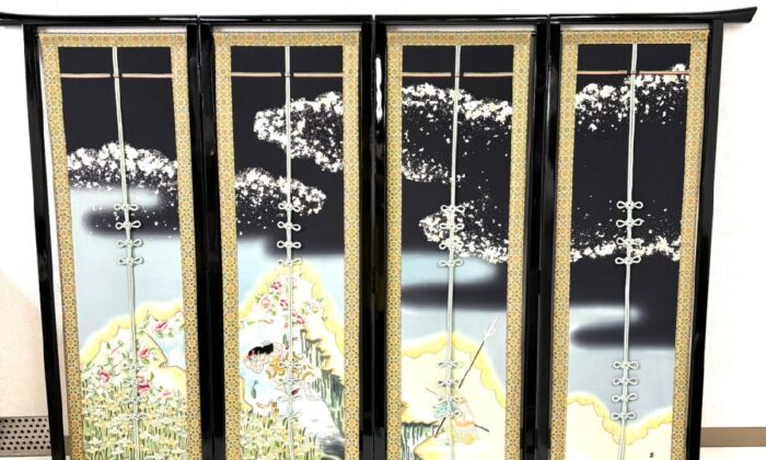 衝立 几帳 絹シルク張り 手刺繍 大判 4枚連 詳細不明のお買い取りをさせて頂きまし ...